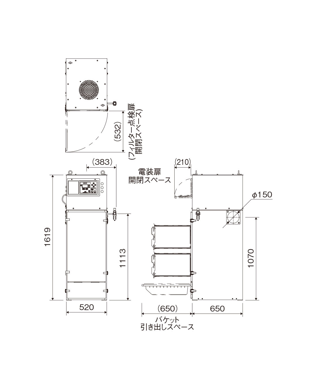 | 集塵機 本体 | B点=使用推奨点 | A点 | B点 | C点 | A点 | B点 | C点 | A点 | B点 | C点 | A点 | B点 | C点 | |