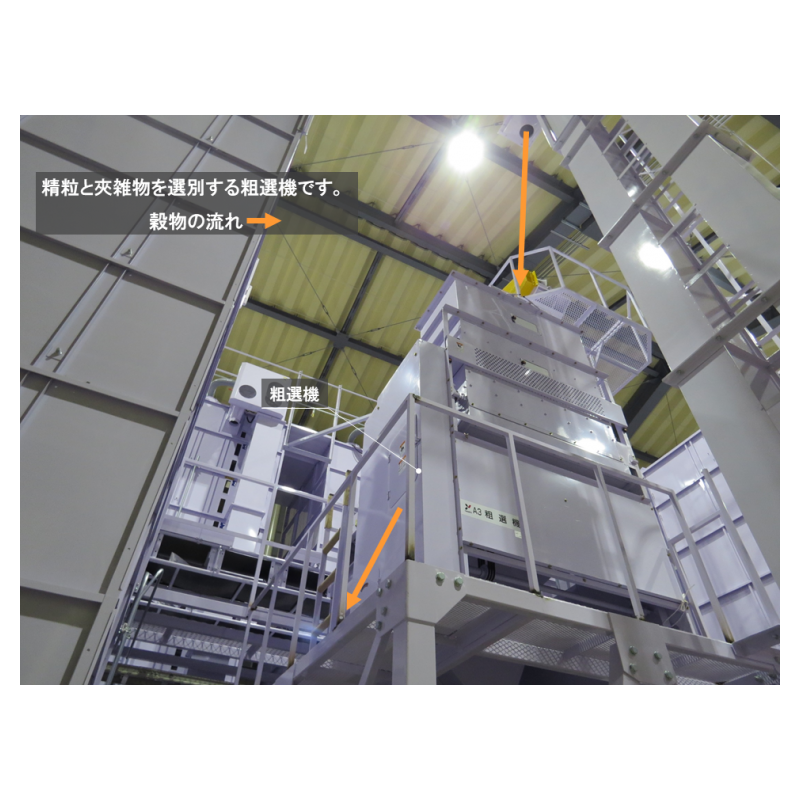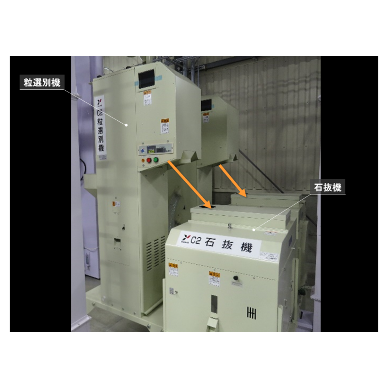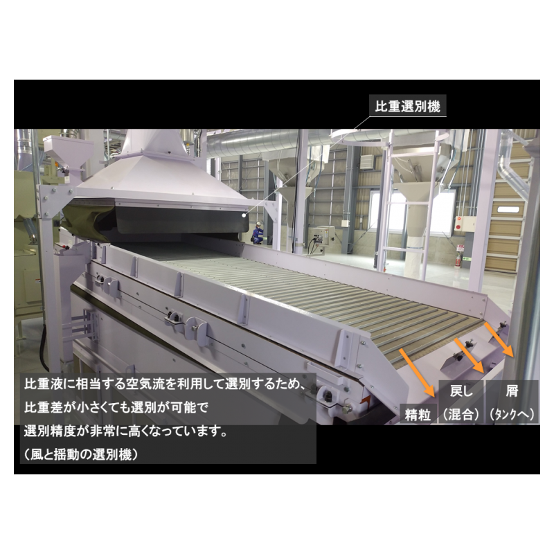 荷受時の状雑物を除去する粗選機や遠赤乾燥機での乾燥、調製ラインでは、風選別機・傾斜選別と粒径選別機・色選と多種多様な選別で品質を均質にできる。