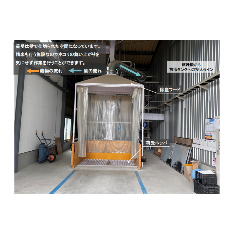 受設備をゾーニングし、徹底的に分けたライスセンター。塵、ホコリを極限まで抑えるため集塵方法にこだわりました!